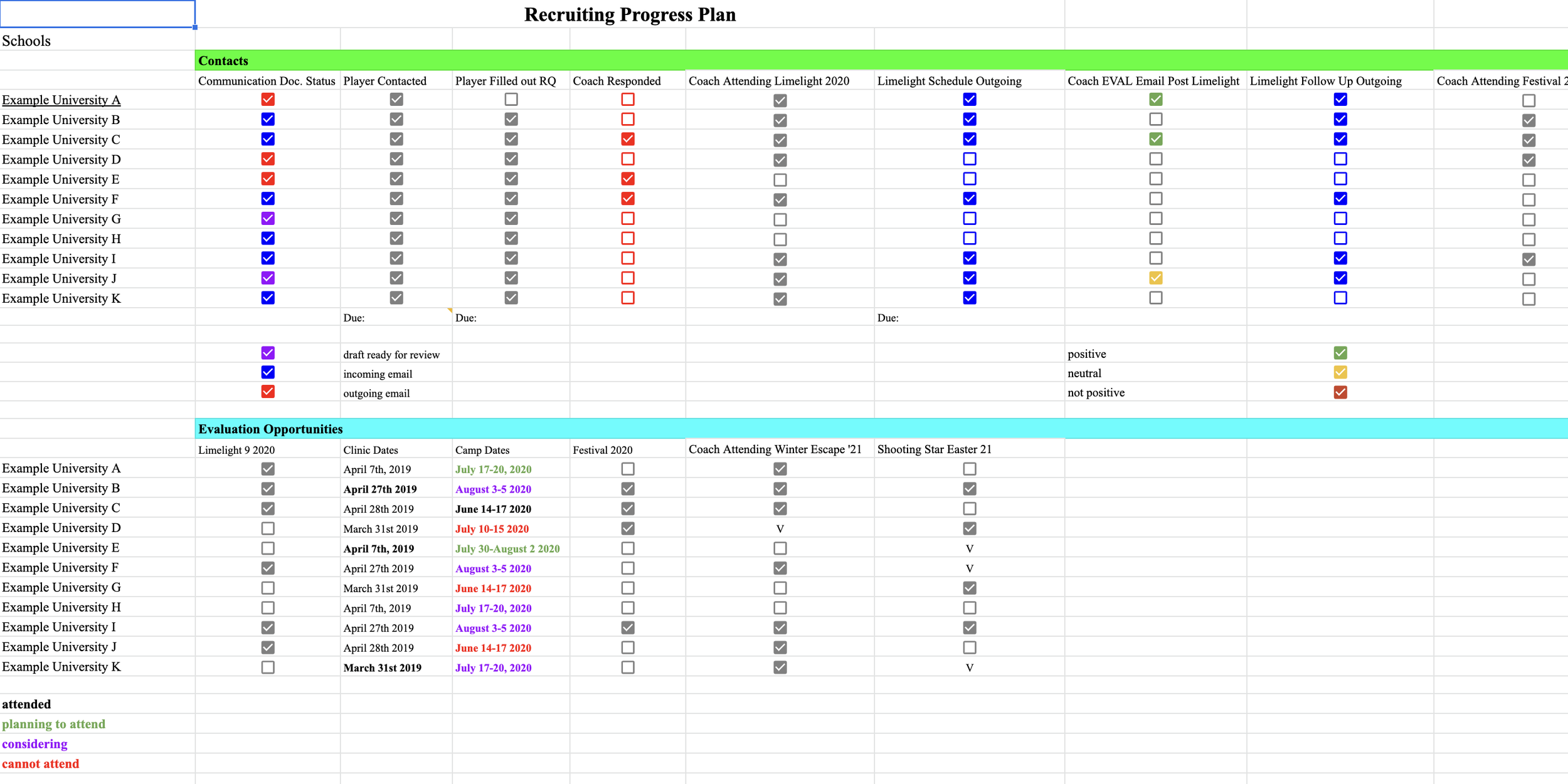 Varsity Pathways provides a complete organization system for your recruiting process. Everything is stored in a shared Google Drive.